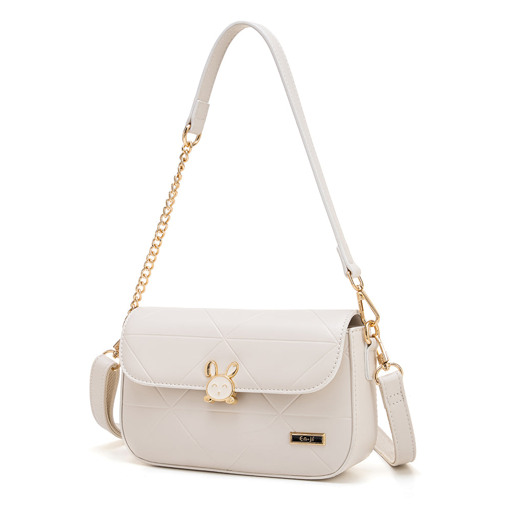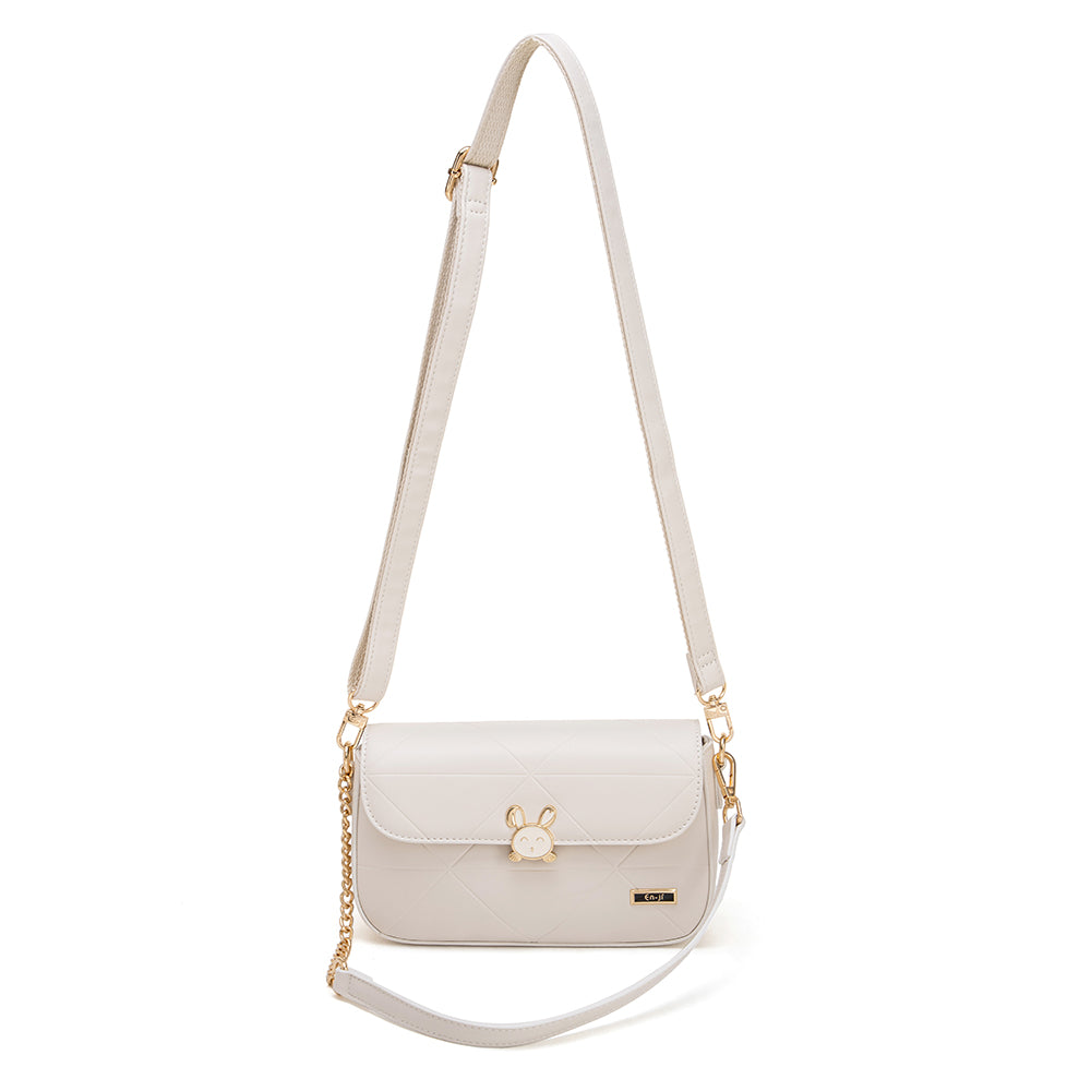 Soft, stylish and so comfy! Berbahan pu leather premium yang punya 3 pilihan warna; black, cream & ivory perfect for any occasion! Desain fashionable dengan aksen motif emboss serta kancing magnet dengan gold hardware bunny yang eye-catching banget lho. Multi kompartemennya cukup muat untuk handphone serta long wallet kamu ya girls. Tersedia tali pendek aksen rantai kombinasi pu leather bisa kamu pakai sebagai shoulderbag juga nih girls. Lengkap dengan extra long strap yang adjustable and removable, so multi look bag. It’s time to show your best outfit with Musubi bag.