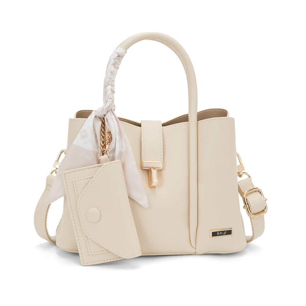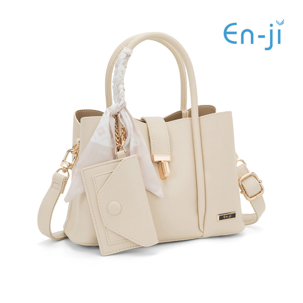 You need this Solra handbag for every occasion! Berbahan pu leather premium dengan desain elegan, hadir dalam 3 pilihan warna neutral soft & bold; black, cream, khaki. Special for Enjilovers nih, free bag charm mini wallet removable yang bisa kamu pakai untuk simpan uang kertas or kartu parkir kamu ya girls. Makin sweet dengan satin scarf removable yang bikin look mu makin girly. Multi kompartemennya bisa muat tablet 8 inch (ukuran : P : 20.5 cm L: 12 cm) serta pretty stuff kamu yang lain. Multi look bag dengan tali panjang adjustable and removable bisa kamu pakai sebagai slingbag.