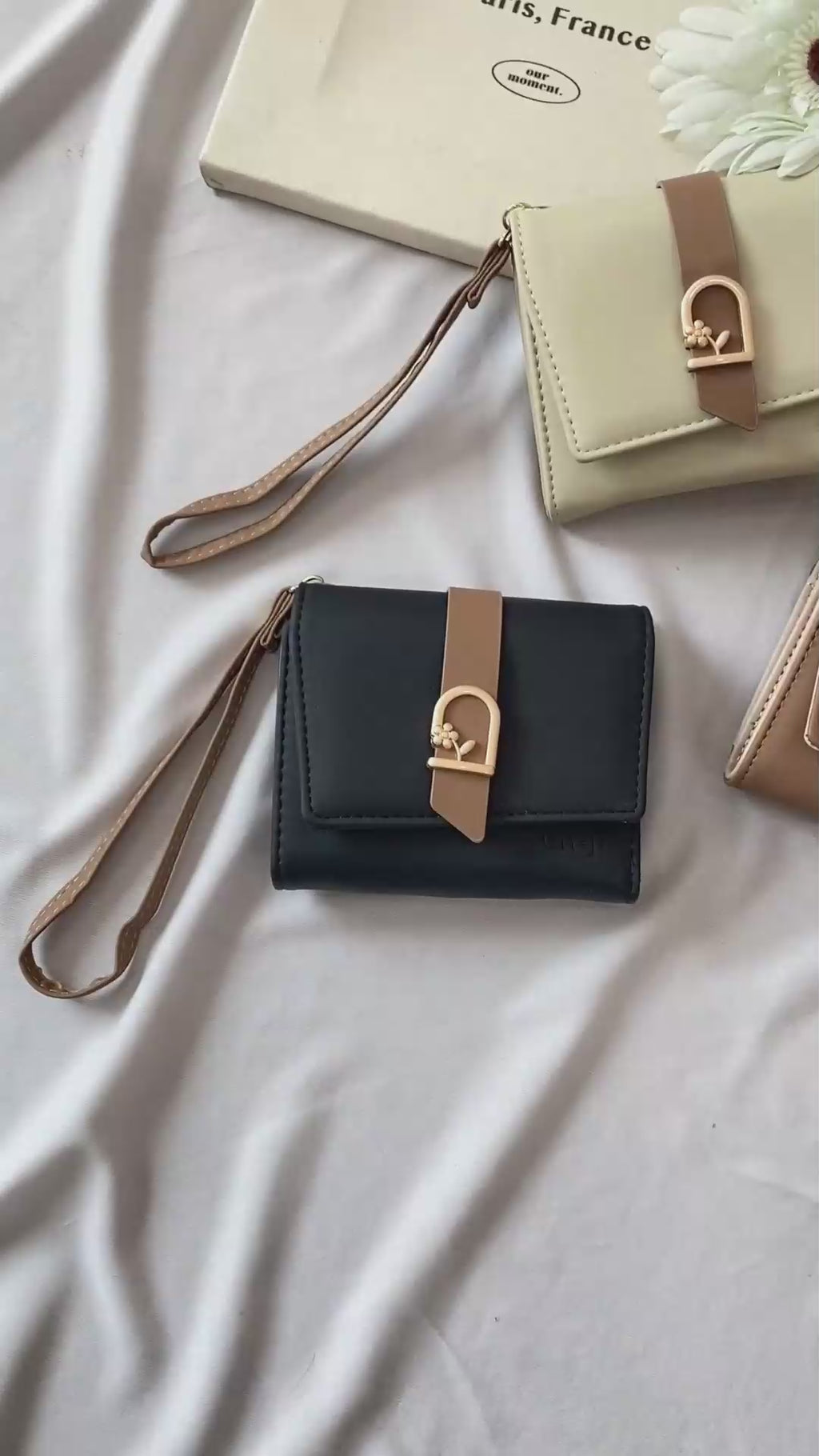 Get your self a matching wallet with your outfit this weekend! Berbahan pu leather premium yang soft, hadir dalam 3 pilihan warna yang ready to pairing with your favorite Enji bags. Tersedia aksen kancing dengan gold hardware doff floral yang on point. Makin mudah dan aman untuk simpan uangmu karena dompet ini punya multi slot lho girls. So easy to bring, dengan hand strap yang bisa dipakai dipergelangan tangan kamu. Get your simply chic way with Anya Wallet.