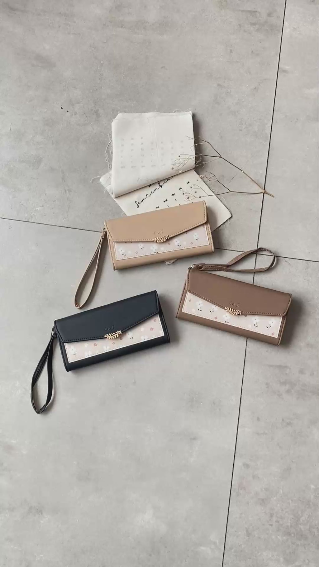 New flowery wallet is here. Joji wallet hadir dengan 3 kombinasi warna stylish; apricot, black & khaki yang ready untuk nemenin kamu hangout or jadi pelengkap Enji bags kamu lho girls. Lengkap dengan hand strap yang bisa kamu pakai dipergelangan tangan, feel free untuk kamu bawa kapanpun. Tersedia aksen kancing dengan gold hardware doff detail leaf yang looking so chic & safe. Wallet ini juga punya multi slot yang lho, muat untuk simpan uang cash serta essentials card kamu tanpa takut tercecer. Stay comfy and simple with Joji wallet.