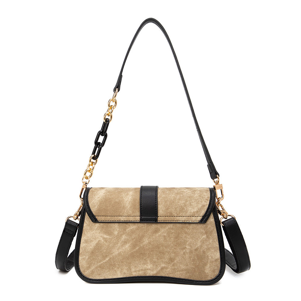 Charming, fresh color, with unique shapes. Yuno shoulderbag hadir dengan warna khaki yang easy to mix and match dengan formal look or hangout look kamu nih girls. Tas ini didesain dengan multi kompartemen yang cukup luas lho, muat untuk handphone serta medium wallet kamu. Bisa kamu pakai dinner date or night party ya girls. Easy to pairing with dress kamu yang paling pretty. Tersedia tali pendek aksen rantai kombinasi pu leather yang bisa dilepas pasang. Dilengkapi extra long strap aksen gesper yang adjustable and removable, so stylish untuk kamu pakai sebagai slingbag. Complete your day with this catchy bag.