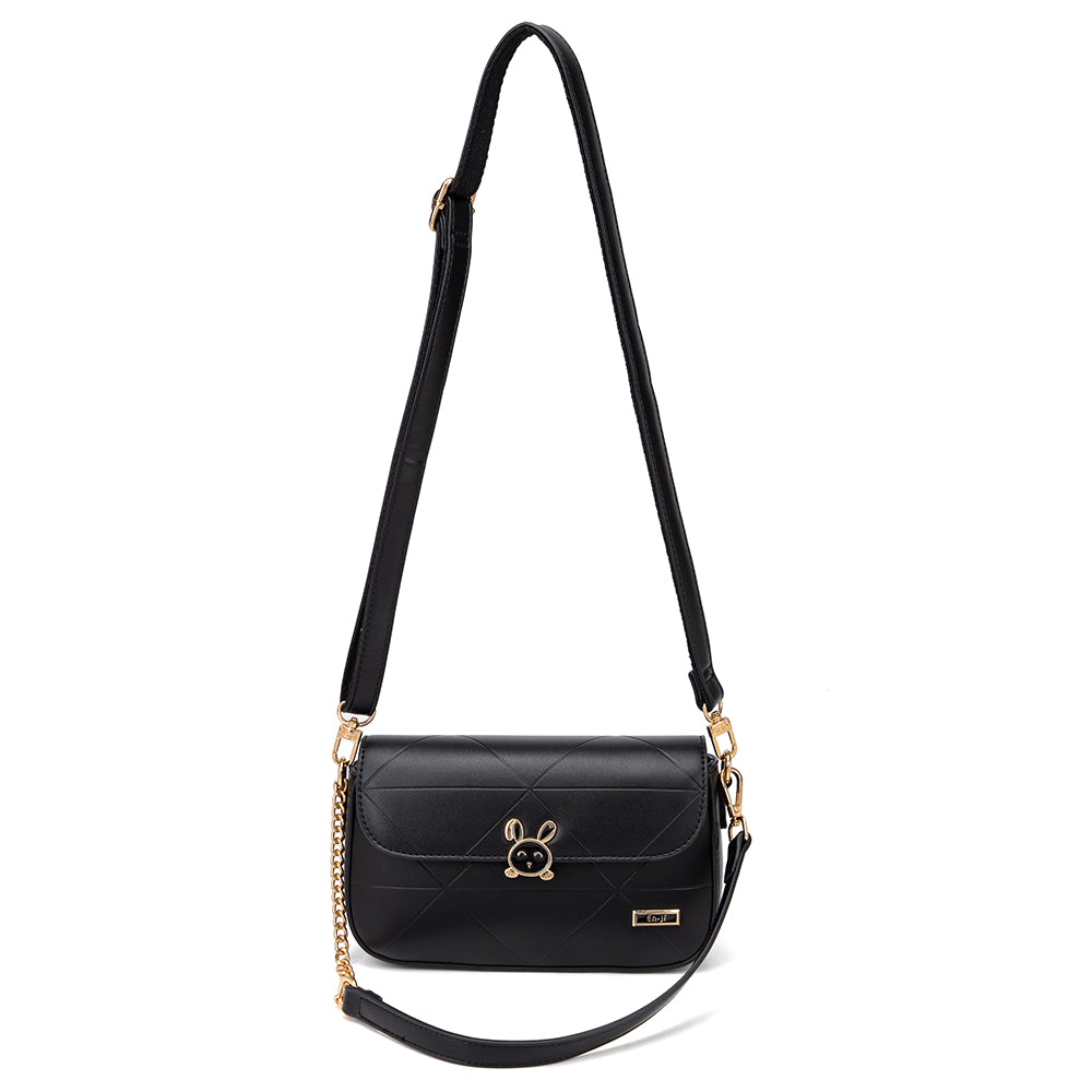Soft, stylish and so comfy! Berbahan pu leather premium yang punya 3 pilihan warna; black, cream & ivory perfect for any occasion! Desain fashionable dengan aksen motif emboss serta kancing magnet dengan gold hardware bunny yang eye-catching banget lho. Multi kompartemennya cukup muat untuk handphone serta long wallet kamu ya girls. Tersedia tali pendek aksen rantai kombinasi pu leather bisa kamu pakai sebagai shoulderbag juga nih girls. Lengkap dengan extra long strap yang adjustable and removable, so multi look bag. It’s time to show your best outfit with Musubi bag.