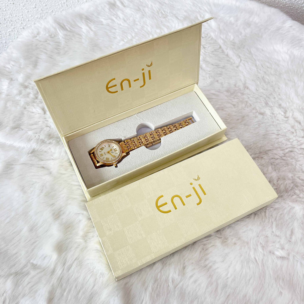 Stay fashionable with Heorin watch! Stylish watch dengan desain crystal mewah dikombinasikan dengan warna gold yang so eye-catching. Cocok banget buat jadi pelengkap look kamu lho girls. Bisa kamu pakai ke office, or party. Berbahan stainless steel premium dengan penguncian clasp yang comfy untuk nemenin kamu seharian. Tenang girls, Heorin watch aman lho jika terkena percikan air. Special for you girls, free exclusive box tiap pembelian jam tangan from Enji collections. Heorin watch designed to make your day feel extraordinary.