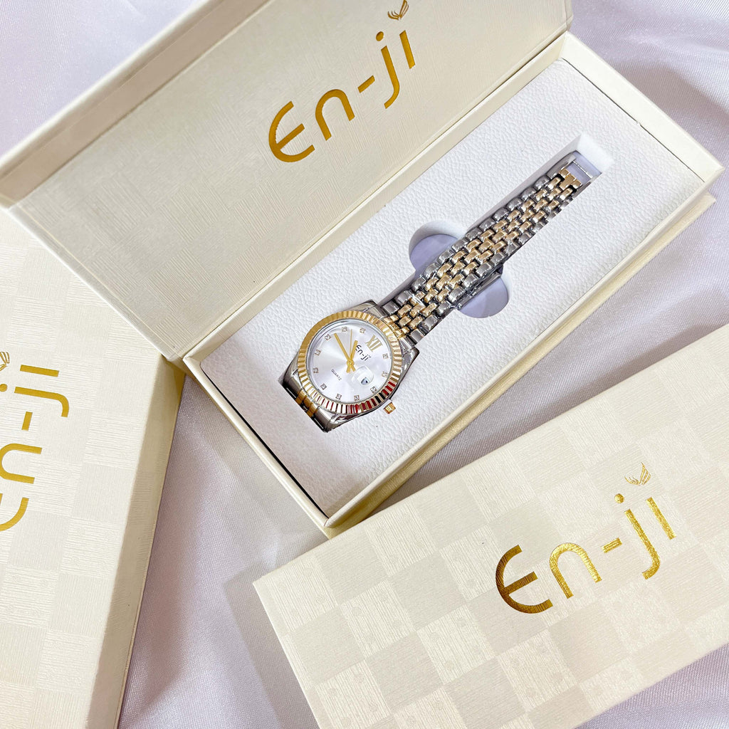Refresh your style with Hesun watch! Berbahan stainless steel premium dengan aksen crystal yang so stunning. Lengkap dengan fitur tanggal yang bikin tambah nyaman untuk kamu pakai all day girls. Hesun watch juga aman lho jika terkena percikan air. Di desain dengan warna silver gold yang classy, easy to mix and match dengan formal look or hangout look kamu. Include exclusive box setiap pembelian Hesun watch girls. Let’s pairing up your best style with Hesun watch.